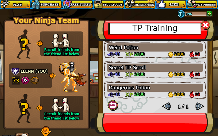Ninja mendapat kesempatan untuk mendapat talent point setiap harinya dengan melaksanakan TP Training di Kage Room. TP Training hanya tersedia 3 misi per harinya.